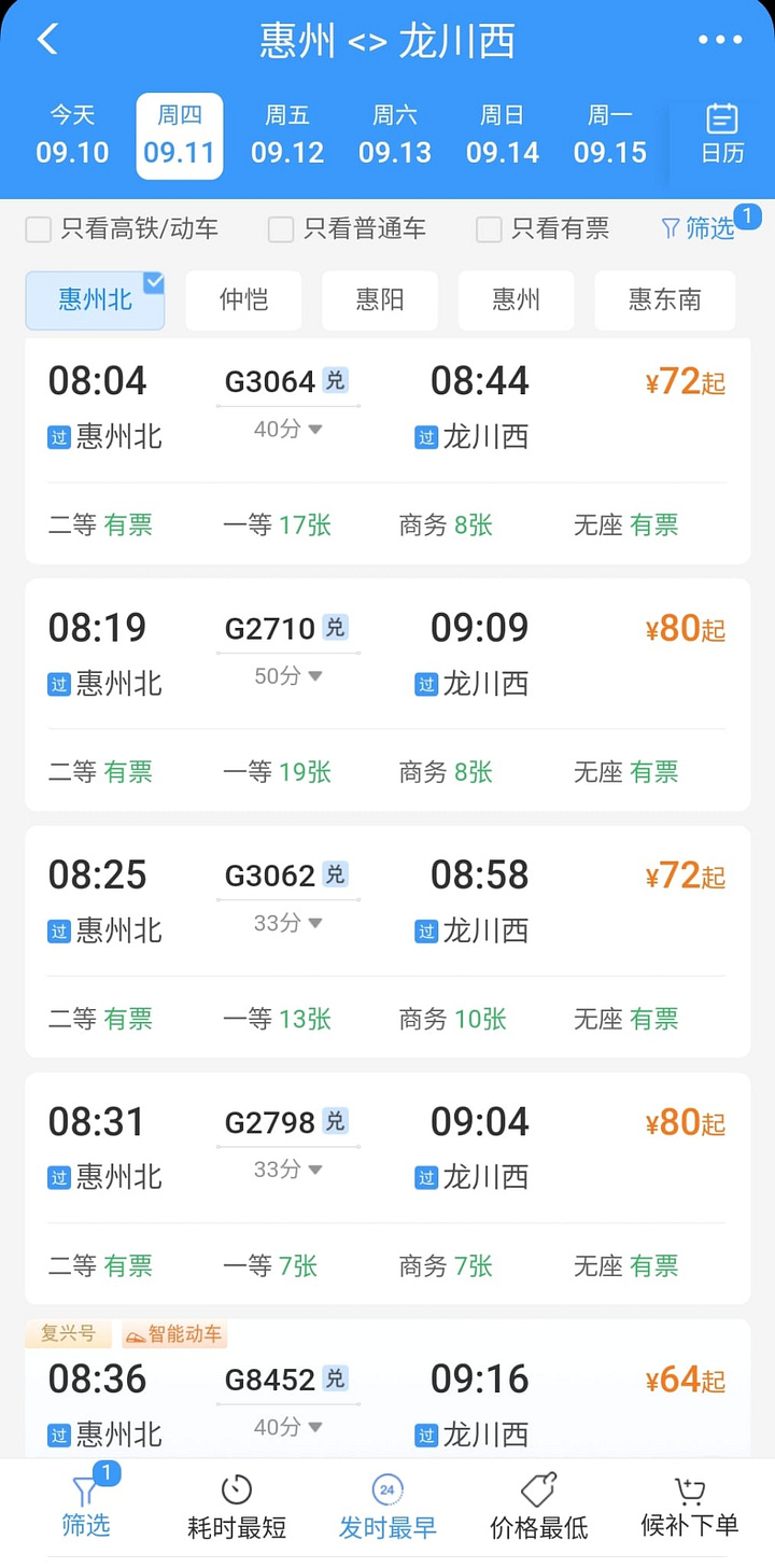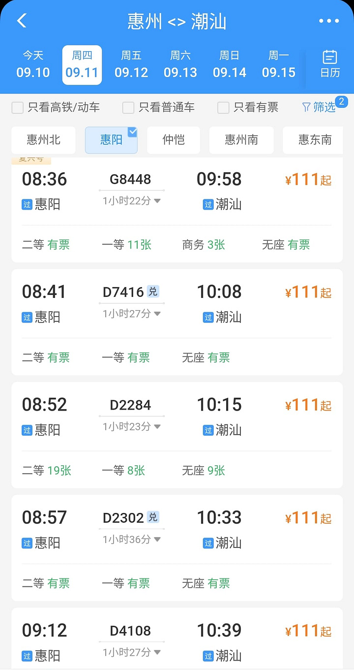Secondly, there are a lot of scheduled services at Huizhou heading to and from Zhejiang, Jiangxi, Fujian, eastern Guangdong and beyond. There are around 50 trains a day per direction stopping at the newly opened Huizhou North, over 60 trains per day per direction at Huiyang Station and around 30 trains per day at also the newly opened Huizhou South.