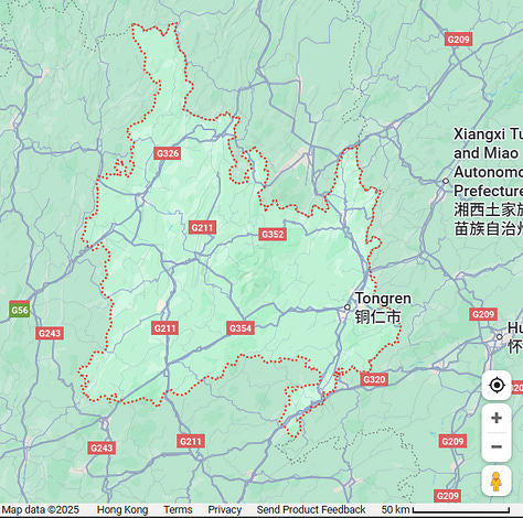To drive this point home, Tongren “City” is the size of the entire island of Shikoku, Japan, almost the size of the entire country of Slovenia and about as large as the state of New Jersey.