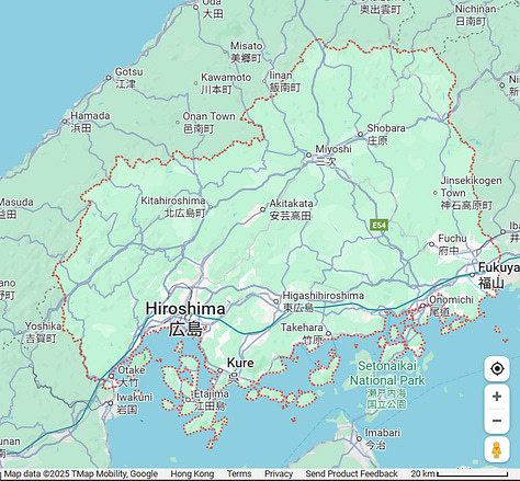 The land area of Xiaogan Prefectural City is similar to that of Hiroshima Prefecture and slightly smaller than the entire island of Hawaiʻi. Is anyone from Hiroshima City going to Fukuyama Station, which is still in Hiroshima Prefecture, to take the Shinkansen?
